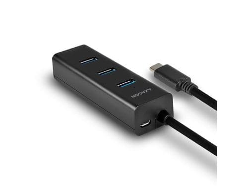 Egy könnyű és kisméretű hub elegáns, matt műanyag tokkal, mely gyorsan és egyszerűen csatlakoztat akár négy USB eszközt is a számítógépéhez. Nagyszerű előnye, hogy képes bármelyik, microUSB csatlakozóval rendelkező mobileszköz töltőt külső áramellátásként használni. A nem használt töltők így ezt az USB hubot ingyen egy gyors töltő központtá változtatják. Mobiltelefonok, tabletek, külső akkumulátorok és egyéb eszközök is tölthetők akár 2 amper mellett (a töltőtől függ) bármely hub porton keresztül, az USB Battery Charging 1.2 technológia támogatásnak köszönhetően. Támogatja az iPad tabletek töltését kiegészítő áramellátás nélkül, körülbelül 1 amper mellett (az iPadet többnyire nem lehetséges tölteni USB 3.0 porton keresztül számítógépről). Képes egyszerre akár több külső merevlemezt is kezelni egyéb áramellátás nélkül. Amikor a külső energiaellátás adott, akár három külső merevlemez is használható egyszerre. Az USB portok a hub teljes felületén helyezkednek el, egymástól megfelelő távolságra, hogy ne akadályozzák a nagyobb USB eszközök csatlakozását sem. A 40 cm hosszúságú fix rögzítésű USB kábel a mobil eszközöket használók számára ideális. Különálló töltő hubként is használható, és az adapterrel akkor is tölthetők az USB eszközök, amikor a PC nincs bekapcsolva vagy csatlakoztatva. Tulajdonságok: • 4 downstream USB 3.0 port, elegendő hellyel a csatlakozók körül. • Egy upstream USB 3.1 Gen 1 port USB Type C apa csatlakozóval, amely egy 40 cm hosszú kábel végén található. • Kompatibilis az USB 3.1 gen 1 / USB 3.0-val és visszafelé kompatibilis az USB 2.0 és 1.1-gyel. • Támogatja a következő átviteli sebességeket: 1.5 / 12 / 480 / 5000 Mb/s (alacsony / teljes / nagy / szuper sebesség). • Támogatja az USB Battery Charging v 1.2 specifikációt. • Mindegyik hub port felhasználható 2 amperes töltéshez (külső USB töltővel – nem tartozék). • Lehetőség a készülék csatlakoztatására a Hot Plug támogatásának köszönhetően. • Teljes Plug and Play támogatás. • A tápcsatlakozó hub csatlakozójának LED-es kijelzése. • Túltöltés észlelése és védelem. • Hub mérete: 96 x 32 x 22 mm. • Hub súlya: 49 g (kábellel együtt). A hub áramellátó módja USB kábelen keresztül (busz áramellátás): • Az USB busz teljesítménye elegendő ahhoz, hogy ellássom egy alacsony energiafogyasztású (egér, billentyűzet, kártyaolvasó, flash lemez stb.) eszközt, vagy saját áramellátással (nyomtató, lapolvasó, 3.5″ külső lemez) a négy porthoz csatlakoztatva. • Ebben az üzemmódban az USB hub egyidejűleg akár két mágneses 2.5″ külső merevlemezzel is képes megbirkózni. • Ebben a módban lehetséges a mobilkészülékek (például az iPadek) töltése, azonban a töltőáram csak 0,9A, esetenként 1A (a számítógéptől függően). A hub áramellátó módja USB töltőn keresztül (saját áramellátás): • Bármilyen, microUSB csatlakozóval ellátott mobiltöltővel (a töltő ajánlott kimeneti áramerőssége 2A) használható. • Ebben az üzemmódban az USB hub egyidejűleg akár három mágneses 2.5″ külső merevlemezzel is képes megbirkózni. Javasoljuk azonban, hogy max. 2 külső 2.5″-es lemezt csatlakoztasson egyidejűleg a megbízható, hosszú távú hub működéshez. • A hordozható eszközök (ideértve az iPadek) gyors feltöltése akár 2A-ig mindegyik hubportban. A töltés során a hub által biztosított teljes áramot a külső tápegység kimeneti árama korlátozza. Független töltő hub mód a számítógéphez csatlakoztatás nélkül (töltő hub): Miután kikapcsolta a csatlakoztatott PC-t, vagy anélkül, hogy a számítógéphez lenne csatlakoztatva, a hub külön USB töltőn keresztül működik USB töltőállomásként is. • A hordozható eszközök (ideértve az iPadek) gyors feltöltése akár 2A-ig mindegyik hubportban. A töltés során a hub által biztosított teljes áramot a külső tápegység kimeneti árama korlátozza. OR támogatás: • MS Windows XP / Vista / 7 / 8 / 8.1 / 10 vagy újabb, Windows Server 2003 / 2008 / 2012 / 2016 vagy újabb (az összes 32- és 64-bites Windows rendszer támogatott), Mac OS X 10.4.x vagy újabb, Linux 2.6.x kernellel vagy afelett. • Megjegyzés: Az illesztőprogramok az operációs rendszerekben megtalálhatók, és teljesen automatikusan telepítésre kerülnek. Nincs szükség más drivert telepíteni, és el sem érhetők. A csomag tartalma: • USB-C 3.1 hub rögzített 40 cm-es kábellel, • többnyelvű kézikönyv CZ / DE / DK / ENG / ESP / FIN / FR / GR / HR / HU / IT / NL / PL / PT / RO / RU / SK / SWE / TR / BG / CN / ARA, • kartondobozba csomagolva.