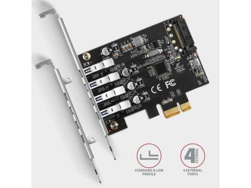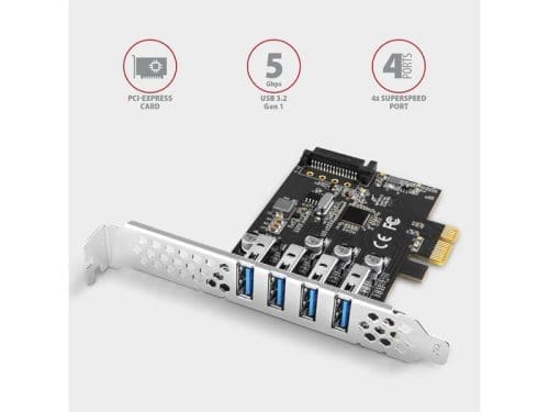 Az AXAGON PCEU-43RS PCI-Express kártya négy, nagy sebességű USB 3.2 Gen 1 porttal egészíti ki az asztali számítógépet. A kártyát gyors, akár 5 Gb/s sebességű adatátvitelre tervezték. Mind a négy SuperSpeed USB port aljzathoz van kivezetve. A vezérlő kettős tápellátása lehetővé teszi a vezérlő és a csatlakoztatott USB-perifériák standard tápellátását a PCI-Express buszon keresztül, valamint opcionális tápellátást a PC tápegységéről a SATA tápcsatlakozón keresztül. A vezérlőegység a megbízhatóan problémamentes kompatibilitásról ismert Renesas chipsettel van ellátva, nagy teljesítményű és UASP-támogatás jellemez. A mellékelt alacsony profilú hátlap lehetővé teszik a vezérlő telepítését a szabványos és az alacsony profilú PC-házakba is. Bemenet: • PCI-Express 2.0 interfész, PCI-Express 1.0a / 1.1 / 2.1 / 3.0 kompatibilis. • Az x1 / x4 / x8 / x16 PCIe sávokkal kompatibilis 1 sávos (x1) vonalak száma. • Az 1 sávos PCI-Express 2.0 busz sávszélessége 5 Gb/s. Kimenet: • 4x külső USB 3.2 Gen 1 port USB Type A-F csatlakozókkal. • SuperSpeed USB – USB 3.2 Gen 1 interfézs (korábban USB 3.1 Gen 1 / USB 3.0). • Teljesen kompatibilis az USB 3.2 Gen 2, eszközök egyidejű működését USB 2.0 a USB 1.1. • Támogatja a következő átviteli sebességeket 5000 / 480 / 12 / 1.5 Mb/s (super / high / full / low speed). • Ha PCI-Express 1.0 verziós buszra van csatlakoztatva, az átviteli sebesség max. 2500 Mb/s. Egyéb tulajdonságok: • Teljes Plug and Play támogatás. • Támogatja az USB SuperSpeed, USB 2.0 és USB 1.1 eszközök egyidejű működését. • Megfelel az USB-IF végleges hivatalos xHCI specifikációjának 1.0 verziójával. • Támogatja az UASP-ot (USB Attached SCSI Protocol) a gyorsabb adatátvitel érdekében a Windows 8 és újabb verzióiban. • Teljes mértékben támogatja az eszközök üzem közbeni USB Hot Plug csatlakoztatását és lecsatlakoztatását. • A vezérlő és a csatlakoztatott USB-perifériák szabványos tápellátása a PCI-Express buszon keresztül. • Ebben a tápellátási módban a PCIe-vezérlő egyidejűleg legfeljebb három mágneses 2.5″-es külső lemez kezelésére képes. • Opcionális tápellátás PC-s forrásból SATA tápcsatlakozón keresztül. • Renesas µPD720201 chipsettel. Támogatott operációs rendszerek: • MS Windows XP / Vista / 7 / 8 / 8.1 / 10 / 11 vagy újabb, Windows Server 2003 / 2008 / 2012 / 2016 / 2019 / 2022 vagy újabb (az összes 32- és 64-bites Windows rendszer támogatott), Linux 2.6.31 kernellel vagy afelett. • Megjegyzés: A hardver-illesztőprogramok telepítése kizárólag a Windows XP / Vista / 7. A Windows 8 / 8.1 / 10 / 11, Server 2012 / 2016 / 2019 / 2022 és később, már nincs szükség külső meghajtók telepítésére, ezek már az operációs rendszer részét képezik. A csomag tartalma: • PCI-Express vezérlő egy szabványos hátlap, • alacsony profilú hátlap, • többnyelvű kézikönyv CZ / DE / DK / ENG / ESP / FIN / FR / GR / HR / HU / IT / NL / PL / PT / RO / RU / SK / SWE / TR / BG / CN / ARA, • kartondobozba csomagolva.