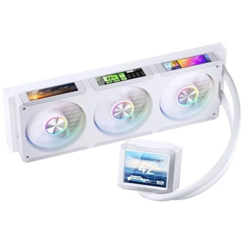 A Jonsbo TF3-360SCBN egy 360 mm-es AiO vízhűtés beépített, 3,5 hüvelykes LCD kijelzővel – ideális azoknak, akik saját ventilátorokat szeretnének használni. Az erős pumpa, a nagy kijelző és a minőségi kivitel miatt remek választás egyedi igényekre épített, DIY konfigurációkhoz. 3,5 hüvelykes színes kijelző a pumpaházon rendszeradatok vagy animációk megjelenítéséhez Ventilátorok nélkül érkezik, teljes szabadság a ventilátorválasztásban és a megjelenésben 360 mm-es alumínium radiátor nagy hűtési teljesítménnyel Hatékony, csendes kerámia pumpa folyamatos használatra ARGB világítás a pumpán, kompatibilis alaplapi szoftveres vezérléssel Kijelző a középpontban, teljes DIY szabadsággal A TF3 széria más modelljeivel ellentétben az SCBN változat nem tartalmaz ventilátorokat. Így tetszőleges 120 mm-es ventilátorokat szerelhetsz fel igényeid szerint, legyen a cél halk működés, maximális teljesítmény vagy erős RGB megjelenés. A pumpán lévő 3,5 hüvelykes LCD marad a látványos fókuszpont, amely hőmérsékleteket, animációkat vagy egyedi grafikákat is meg tud jeleníteni. Stabil hűtés bevált technológiával Az alumínium radiátor és a tartós kerámia pumpa együttese megbízható hőelvezetést biztosít még nagy teljesítményű CPU-k esetén is. A karcsú pumpaegységnek és a rugalmas csöveknek köszönhetően a TF3-360SCBN sokféle házba és összeállításba könnyen beépíthető. Rugalmas ARGB és prémium kivitel A pumpa címezhető RGB világítást kínál, amely vezérelhető például ASUS Aura vagy MSI Mystic Light szoftveren keresztül. A fekete dizájn szinte bármilyen gépbe illik, legyen minimalista, „stealth” vagy erősen RGB-s összeállítás. Tapasztalt építőknek ajánlott, akik egyedi elvárások alapján építenek.