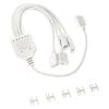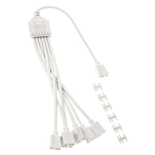 A Kolink ARGB 3-pines elosztókábele lehetővé teszi egy D-RGB forrás kiterjesztését, hogy esztétikailag kifogástalan rendszert hozhassunk létre. Szabványos, 3-pines vezérelhető RGB csatlakozókkal rendelkezik, amelyek egy bemenetről két kimenetre osztják a jelet. A csomag két átalakítót is tartalmaz. Az elosztó kábel bármilyen szabványos 3-pinű 5V RGB vezérlővel vagy a nagyobb alaplapgyártók által gyártott RGB csatlakozókkal használható. A 3-pinű LED csatlakozón lévő nyíljelölés a D-RGB csatlakozón lévő +5V jelöléssel legyen összehangolva. Műszaki adatok: Szín: Fehér Kábel specifikációk Kábel típusa: Elosztó Árnyékolt kábel: Igen Csatlakozási lehetőségek Csatlakozó 1: LED 5VDG: (3-Pin) Csatlakozó 2: LED 5VDG: (3-Pin) 4x Kábel hossza: 30 cm