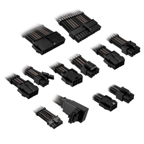 16 AWG vezetőkeresztmetszetükkel ezek a kábelek kiváló vezetőképességüknek és hőállóságuknak köszönhetően nagy teljesítményű alkalmazásokhoz készültek. Minden kábel PET (polietilén-tereftalát) fonattal van bevonva ami nagyon tartós és rugalmas anyag, amely zökkenőmentesen alkalmazkodik a PC igényeihez. A Kolink Core Pro fonott kábelhosszabbító készlet tartalma: 1x 20+4 tűs kábel (450 mm, 350 W) 1 db 8 tűs kábel (450 mm, 400 W) 1x 4+4 tűs kábel (450 mm, 400 W) 3 db 6+2 tűs kábel (450 mm, 300 W) 1 db 6 tűs kábel (450 mm, 300 W) 1x 16 tűs 12VHPWR kábel (600mm, 600W) 1x Kolink Core Pro 12V-2×6 90 fokos 12VHPWR adapter (40mm, 600W) Kábelenként három kábelfésű Kolink Core Pro 12V-2×6 90 fokos 12VHPWR adapter mellékelve A Kolink Core Pro 12V-2×6 90 fokos 12VHPWR adapter sokkal könnyebbé teszi a 16 vezetékes 12HPWR összekötő kábelek kábelvezetését 12 + 4 tűs csatlakozóval, különösen kompakt csomagokban. Akár 600 wattos teljesítményre tervezték, megakadályozza a kábelek elhajlását és elkerüli a túlmelegedést a körülbelül 340 gramm rézből készült beépített hűtőbordával. Műszaki adatok: Kábelhossz: 20+4 tűs ATX: 450 mm 4+4 tűs CPU: 450 mm 8 tűs CPU: 450 mm 6+2 tűs PCIe: 450 mm 6 tűs PCIe: 450 mm 16 tűs 12VHPWR: 600 mm Anyagok: PET (polietilén-tereftalát), réz Szín: Jet Black/Gunmetal Grey Vezető vastagság: UL 1007 16AWG Kolink Core Pro 12V-2×6 90 fokos 12VHPWR adapter 1. típus: Méretek: 22.5 x 40 x 33 mm (Sz x Ma x Mé) Anyag: Réz (aranyozott) Csatlakozók: 1x 12+4-pólusú aljzat 1x 12+4-pólusú csatlakozó Pozícióérzékelő csapok: Alul