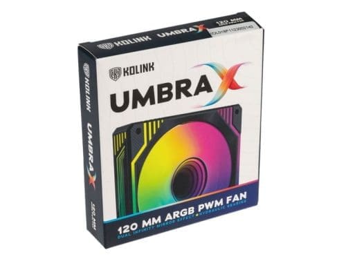120 mm-es PWM ventilátor fekete kerettel és fehér lapátokkal 28 mm-es mélység a nagyobb hatékonyság érdekében ARGB LED-ek belső és külső gyűrűkben, oldalsó világítás Hub stílusos végtelenített tükör hatással Hidraulikus siklócsapágy a megbízható és csendes működésért Antivibrációs párnák a vibráció mentesség érdekében max. 1.600 ford./perc, 2,46 mmH2O, átlagosan 24 dB(A) mellett 3 tűs PWM és 3 tűs ARGB dugók és aljzatok láncba kötéshez A Kolink Umbra X ARGB/PWM 120 mm-es ventilátorokat a kiváló hűtési teljesítményre optimalizálták. Vastagabb kerettel rendelkeznek, mint a hagyományos ventilátorok, 28 mm-esek, ami lehetővé teszi a ventilátorlapátok számára, hogy több levegőt mozgassanak alacsonyabb sebességgel, és ezáltal alacsonyabb zajszinttel. A PWM vezérlésnek köszönhetően 600 és 1.600 ford / perc között szabályozhatja a sebességet, a számítógép aktuális teljesítményétől függően. A Kolink Umbra X maximális légáramlása 103,63 m3/h 2,46 mmH2O statikus nyomáson. Mindez mindössze 24 dBA hallható zajt eredményez a suttogóan halk teljesítmény érdekében, függetlenül attól, hogy milyen keményen használja a számítógépet. A ventilátor hidraulikus csapággyal van felszerelve. Ez hosszú alkatrész-élettartamot biztosít 40 000 órás átlagos állásidővel (MTBF)!
